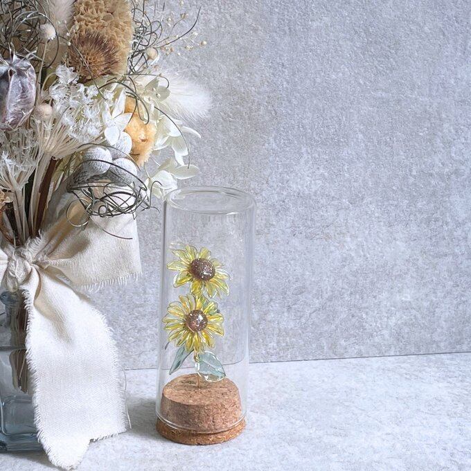 "頑張りすぎないインテリア" ひまわりのガラスボトル プレゼント お花 ギフト ひまわり イエロー インテリア 夏 夏支度